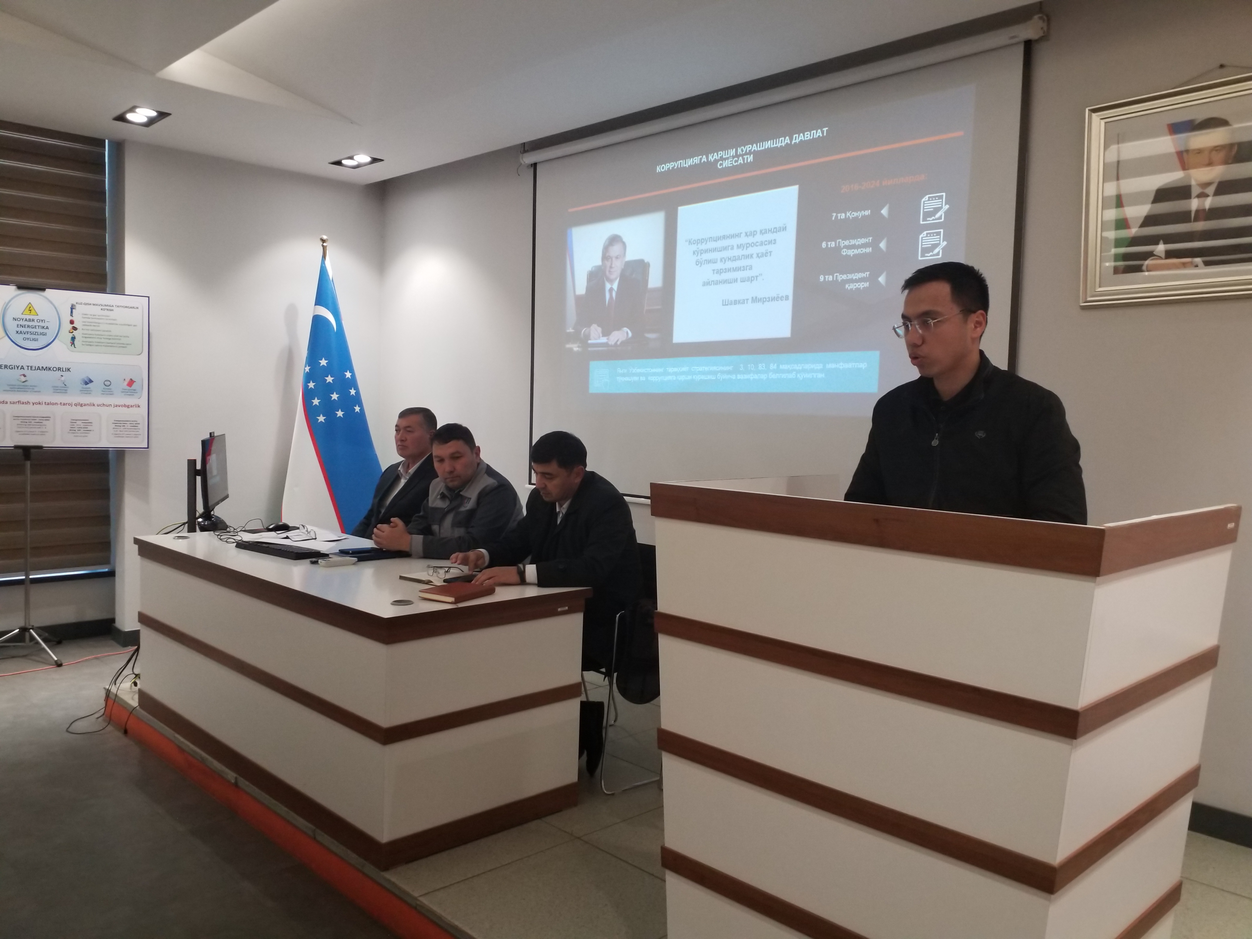 “9-dekabr - Xalqaro korrupsiyaga qarshi kurashish kuni” munosabati bilan o‘tkazilayotgan “Ochiq eshiklar” tadbirida “Issiqlik elektr stansiyalari” AJ Muvofiqlik bo‘limi boshlig‘i B. Nishonxodjayev tomonidan stansiya faoliyatida ochiqlik va shaffoflikni ta’minlash, korrupsiyaning oldini olish va bartaraf etish mavzusida ochiq muloqot o‘tkazildi. Kuchga kiritilayotgan “Manfaatlar to‘qnashuvi to‘g‘risida”gi qonuni korrupsiyaga qarshi tizimning uzviy davomi ekanligi, manfaatlar to‘qnashuvi to‘g‘risidagi deklaratsiyani to‘ldirish va taqdim qilish tartibi, manfaatlar to‘qnashuvi masalalarini ko‘rib chiquvchi davlat organlari va tashkilotlari odob-axloq komissiyalari vazifalari hamda majburiyatlariga asosiy e’tibor qaratildi.